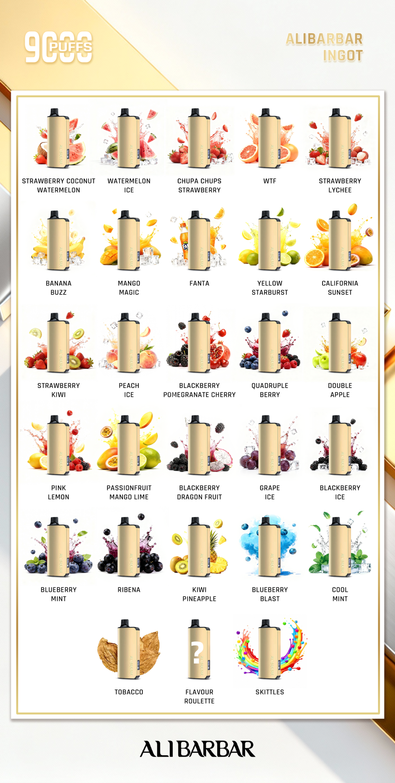 The Alibarbar Ingot is a cutting-edge vaping device designed to deliver up to 9000 puffs, making it ideal for extended use without the need for frequent replacements. Boasting a substantial 22ml e-liquid capacity and a powerful 2350mAh built-in battery, this non-rechargeable device provides a seamless and hassle-free vaping experience. Its innovative design ensures both convenience and performance, allowing users to enjoy rich flavours and consistent satisfaction throughout its lifespan. Perfectly balancing functionality with style, the Alibarbar Ingot is the ultimate choice for those seeking a reliable and premium vaping solution.